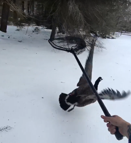1014. An injured goose in Long Island has thankfully been captured and taken to a rehab center to recover. They think he was clipped by a car and found his way onto the ice. At first he did not want to be captured, and gave them a wild goose chase.